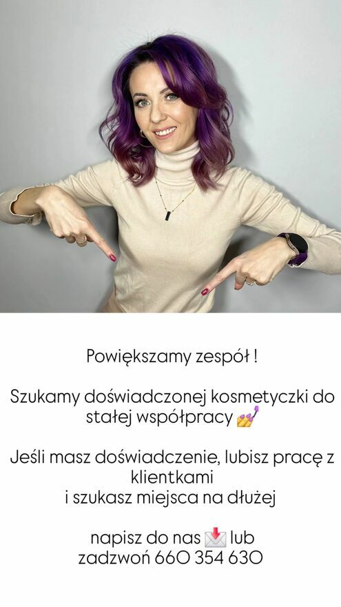 DOŁĄCZ DO NASZEGO ZESPOŁUW związku z rozwojem salonu poszukujemy doświadczonej kosmetyczki / stylistki do stałej współpracy.