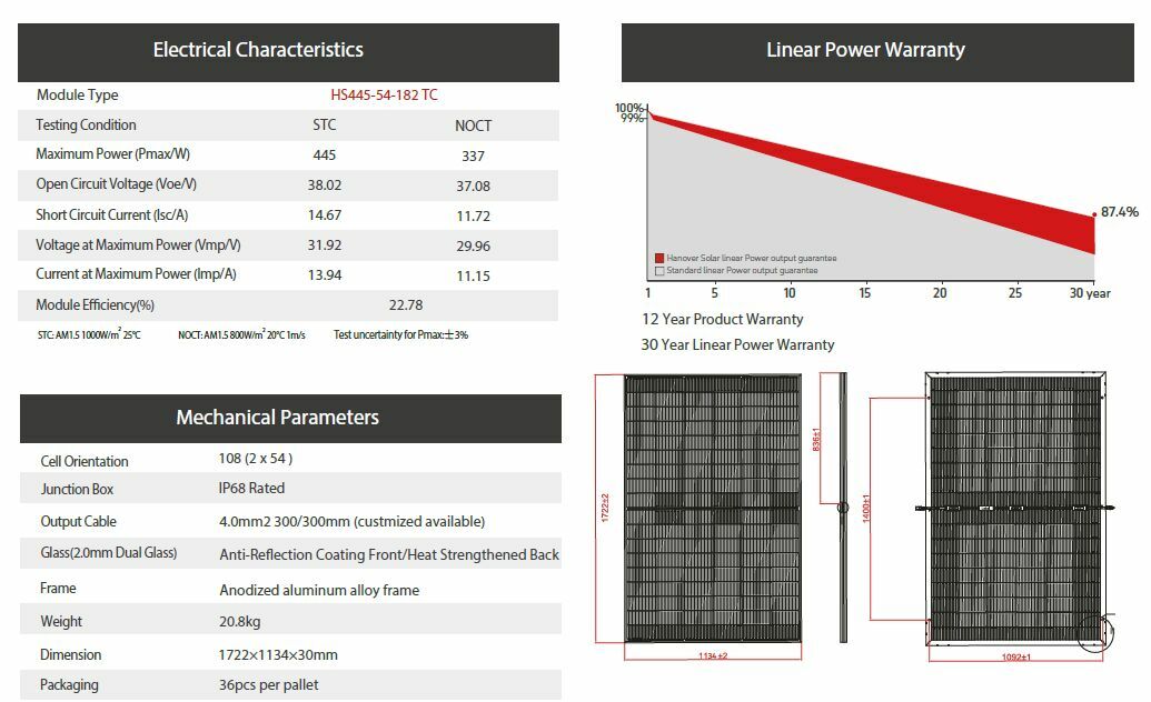 Panel Hanover Solar TOPCON 445W